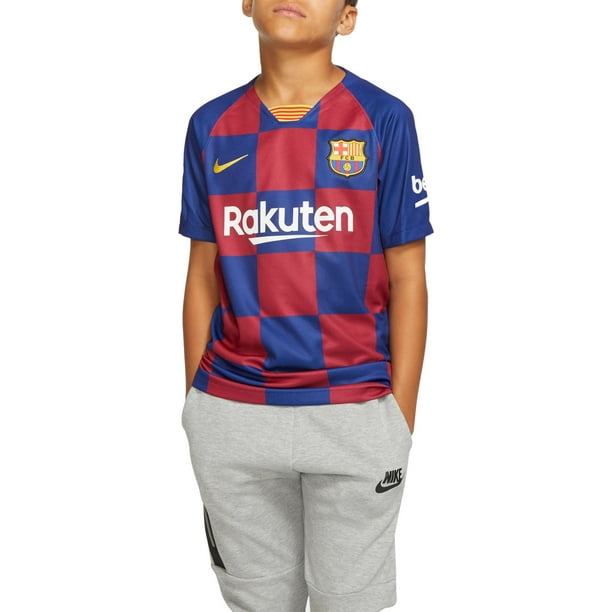 Nike breathe fc barcelona stadium home kids' football jersey brings team pride details, such as a woven crest, together with performance elements like nike breathe fabric with a highly breathable construction to help you stay dry and cool.